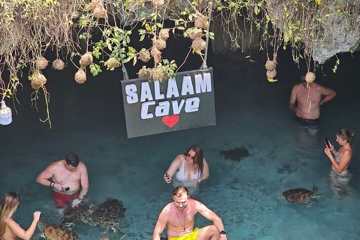 The cave’s stalactites and stalagmites create an otherworldly atmosphere, offering a cool retreat from the island's heat. Alongside the cave, visitors can also encounter a sanctuary for endangered green turtles, which are often found resting in the area.